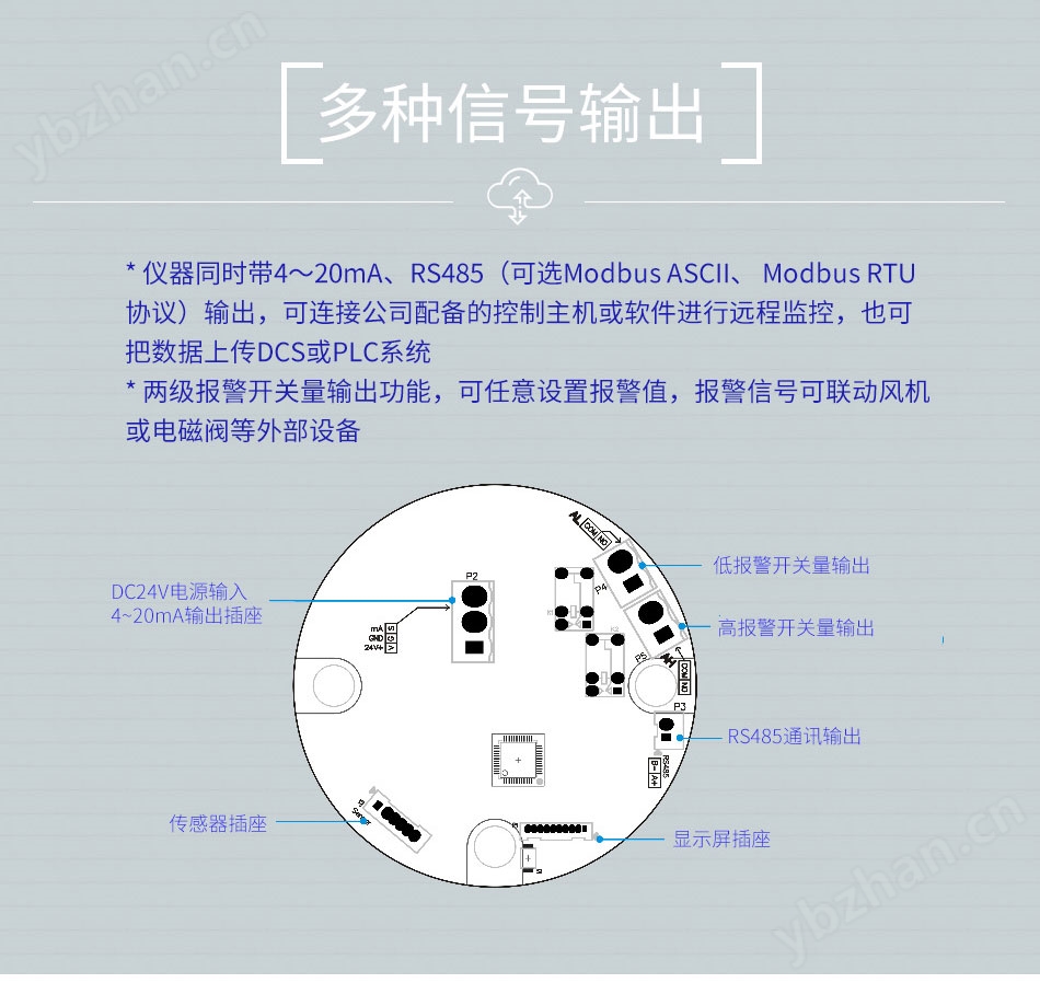 輸出數字信號 | RS485總線(四線制,通常傳輸距離1200米,電纜屏蔽雙絞線) |