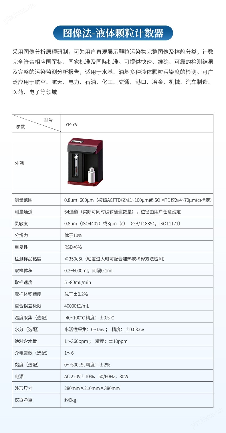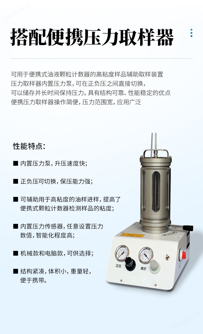油品顆粒計(jì)數(shù)儀是采用國際液壓標(biāo)準(zhǔn)委員會(huì)指定的光阻(遮光)法計(jì)數(shù)原理,專門用于現(xiàn)場油液污染度等級(jí)快速檢測裝置。具有體積小、質(zhì)量輕、檢測速度快、精度高、重復(fù)性好等優(yōu)點(diǎn),可在高溫高壓等及其惡劣的條件下工作。內(nèi)置微水傳感器和溫度傳感器,在進(jìn)行污染度檢測的同時(shí),可對(duì)水含量和油液溫度一并檢測。適用于發(fā)動(dòng)機(jī)油、齒輪油、變壓器油(即絕緣油)、液壓油、潤滑油、合成油等油液,可廣泛應(yīng)用于電力電廠、航空航天、石油化工、交通港口、鋼鐵冶金、汽車制造等領(lǐng)域。