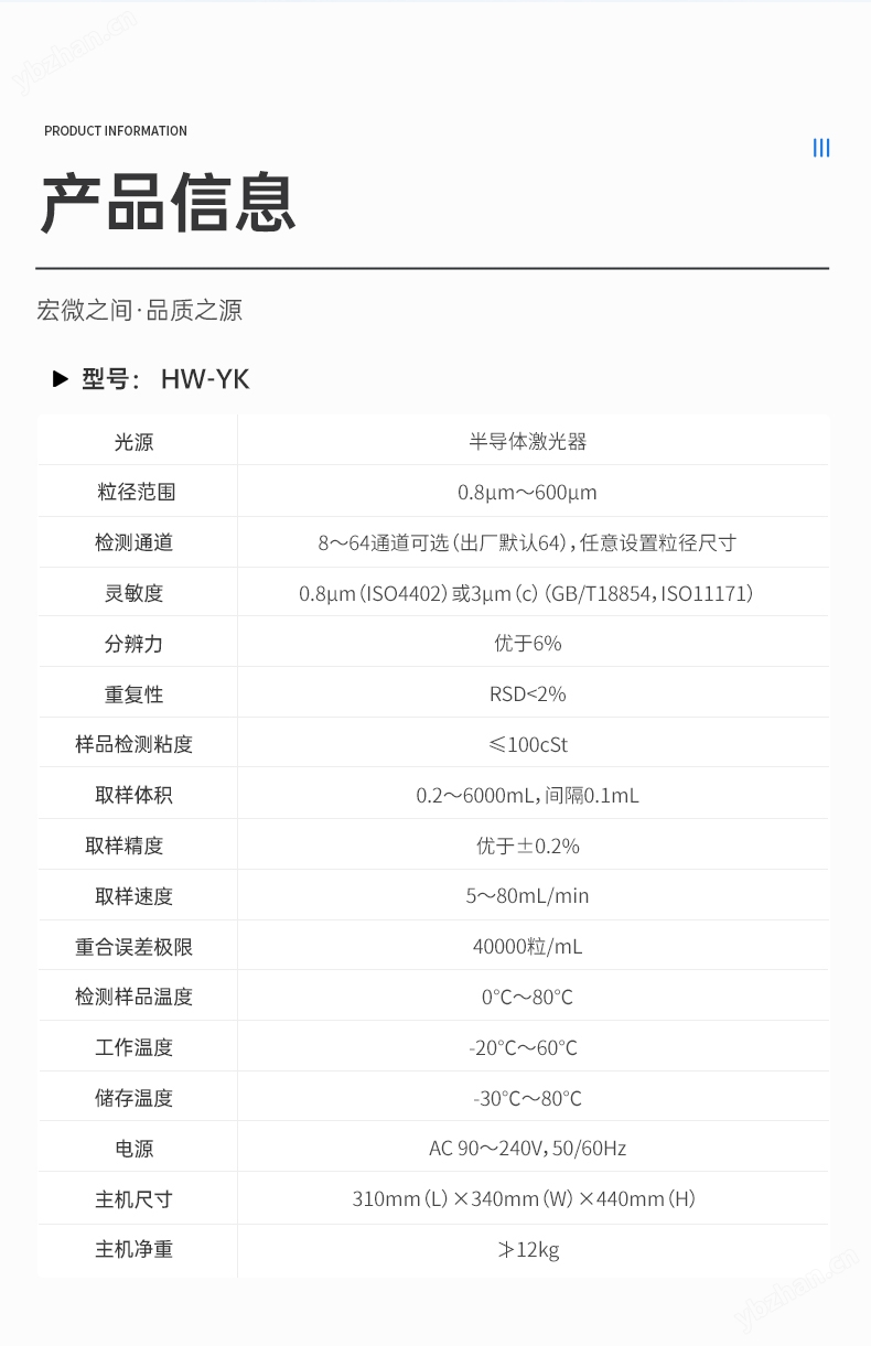 l 靈敏度:0.8μm(ISO4402)或3μm(c)(GB/T18854,ISO11171)