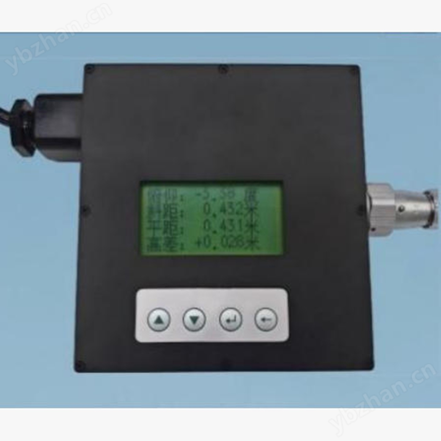 礦用本安型激光測距定位指向儀是集電子、光學、機械等技術為YI體的儀器。具備遠距離激光指向、距離測量、角度測量、高度測量 等功能。儀器采用主機與控制器分體設計,主機部分懸掛在高處,控制 器安裝在方便操作的低處,二者之間采用防爆電纜連接。控制器可以控 制激光指向的電源、顯示激光線的投射角度和測距數值。儀器通過懸掛組可快速固定在錨桿上,可在360°范圍任YI粗調,微調準確,調節方便,制動可KAO。儀器 投射的點激光具有光斑小、亮度GAO、光斑漂移小等特點。儀器具備GAO精 度的測距、測角功能,可實時監測激光指向的狀態。為適應煤礦井下供 電條件,本產品既可適配電池直流供電,也可以適配交流輸入的直流電源供電。