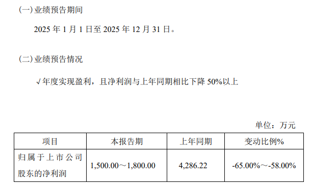 儀表網 行業財報】1月28日,科潤智控(920062)發布年度業績預告,預計2025年全年歸屬于上市公司股東的凈利潤為1500.00萬元-1800.00萬元,同比預減58.00%-65.00%。