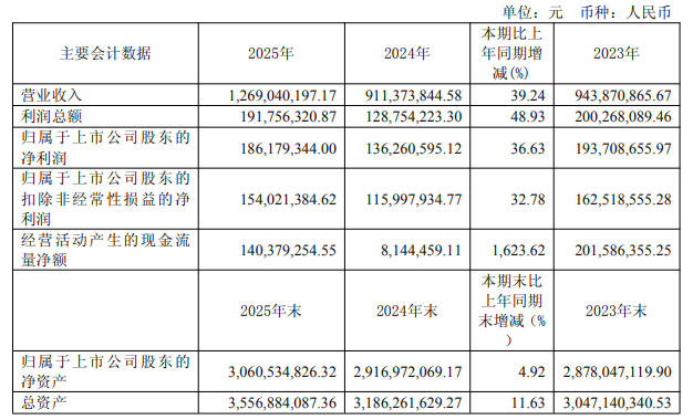 2025年,奧普特實現營業總收入12.69億元,同比大幅增長39.24%;歸母凈利潤1.86億元,同比增長36.63%;扣非凈利潤1.54億元,同比增長32.78%;基本每股收益1.5268元,同比增長36.96%。若剔除股份支付費用影響,公司歸母凈利潤實際增速高達56.20%,超額完成股權激勵設定目標,盈利增長含金量十足。