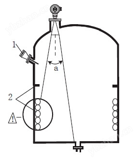 ● 如果罐內有(1)(2)干涉物件,應采用導波管進行測量。