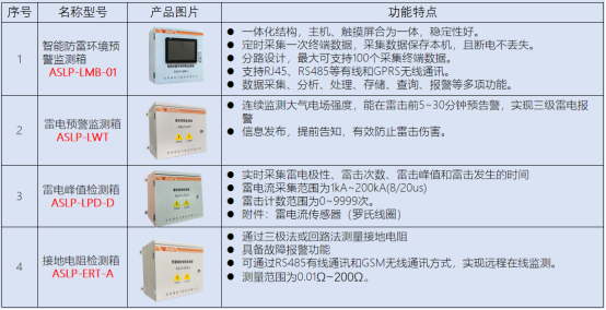 該系統的硬件產品陣容強大,涵蓋智能防雷環境預警監測箱、雷電預警監測箱、雷電峰值檢測箱、接地電阻檢測箱、雷擊環境檢測器、浪涌保護器、信號類浪涌保護器、SPD 后備保護器等。其中,智能防雷環境預警監測箱采用一體化結構,支持多種通訊方式,具備數據采集、分析、存儲、報警等多項功能;雷電預警監測箱可實現三級雷電報警,提前規避雷擊傷害;雷電峰值檢測箱能準確采集雷電極性、次數、峰值和時間等數據;接地電阻檢測箱通過多種測量方法,實現接地電阻的遠程在線監測;雷擊環境檢測器可完整監測電網參數、設備狀態及雷擊相關數據,為 SPD 壽命預判提供依據;浪涌保護器泄放能力強、響應速度快,搭配 SPD 后備保護器,能有效防止 SPD 起火燃爆,保障系統安全運行。