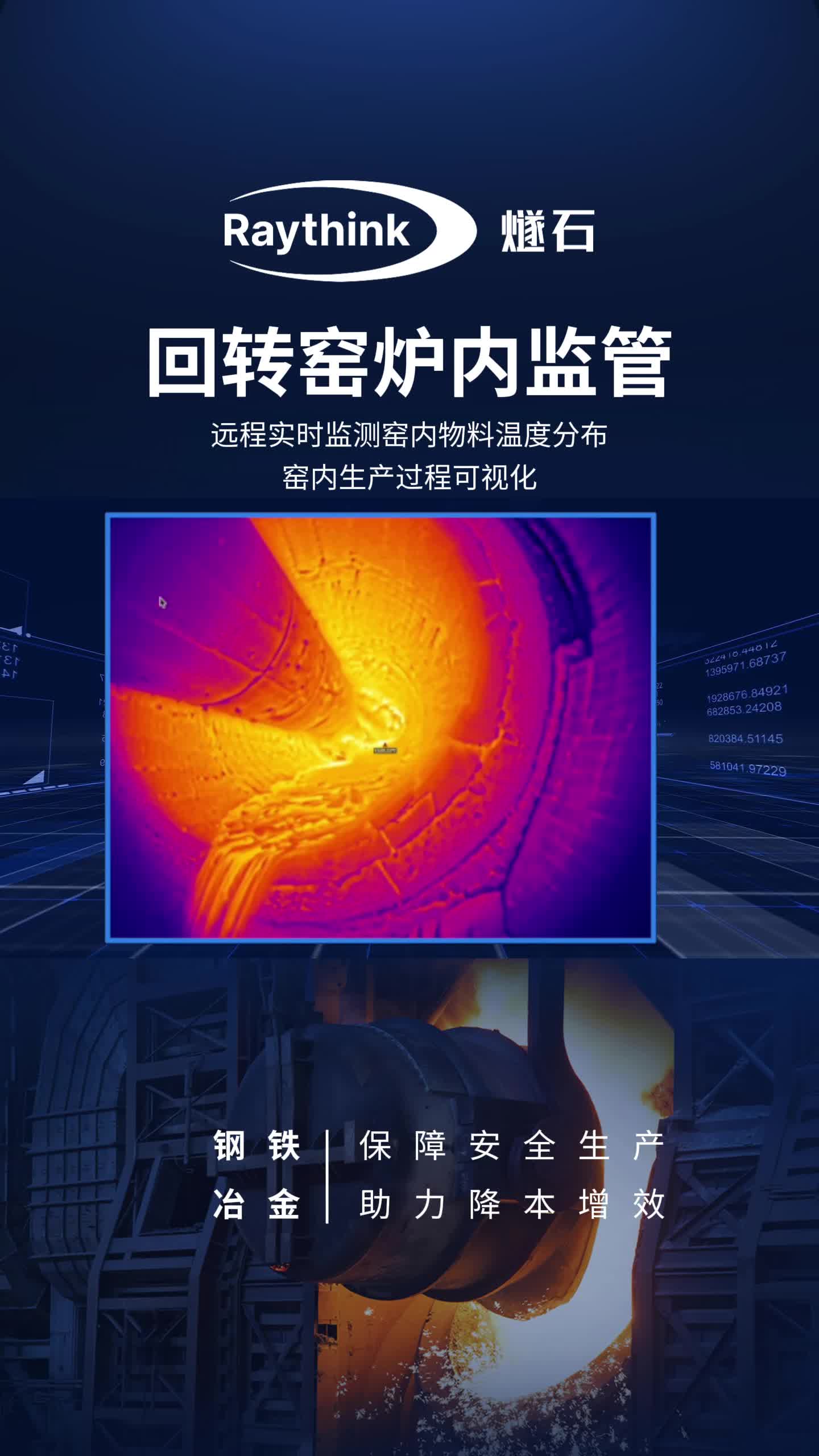 #Raythink燧石 #高溫熱像儀 可遠程、實時監管#回轉窯 窯內生產過程。#超高溫測溫 環境高清、流暢、不丟幀。無需停機檢修便可制定設備維護計劃!#燧石回轉窯熱成像智能監管分析系統 保障#安全生產 、助力降本增效#自動化 #鋼鐵冶金 #水泥回轉窯 #冶煉廠